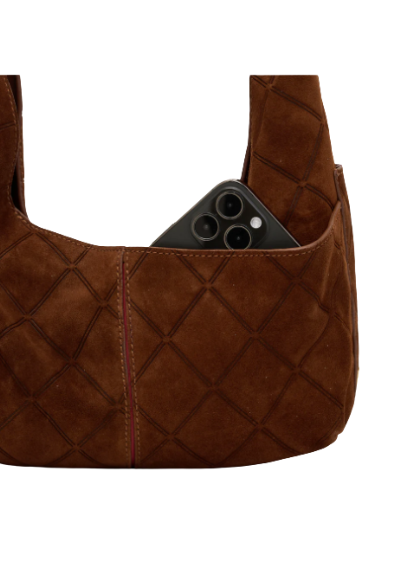 - Interior: Card slot, interior drop pockets created from crisscross construction