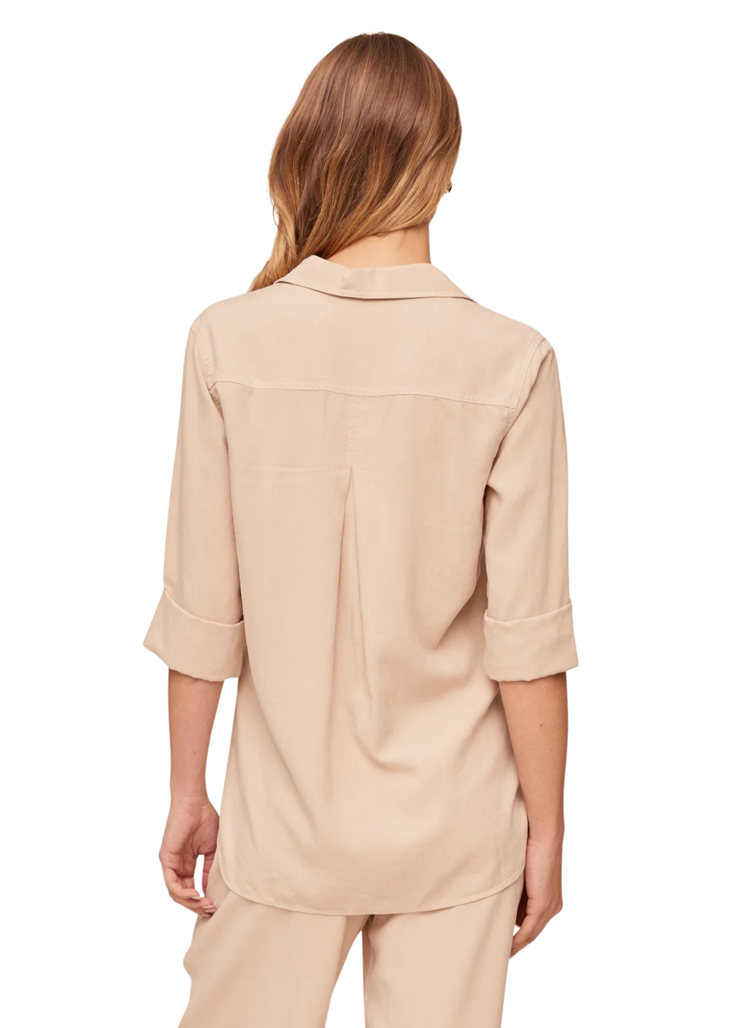 • The full frontal button closure allows you to choose how you wear the garment. Whether left opened over a tank, or buttoned and tucked into a pair of trousers this will remain in your summer rotation.
