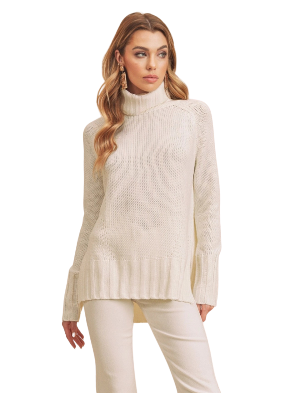 Cozy up in this super soft funnel neck Danica Sweater. With a slouchy neckline and longer fit, it is perfect for those cold nights. Pair with our bottoms for ultimate comfort.