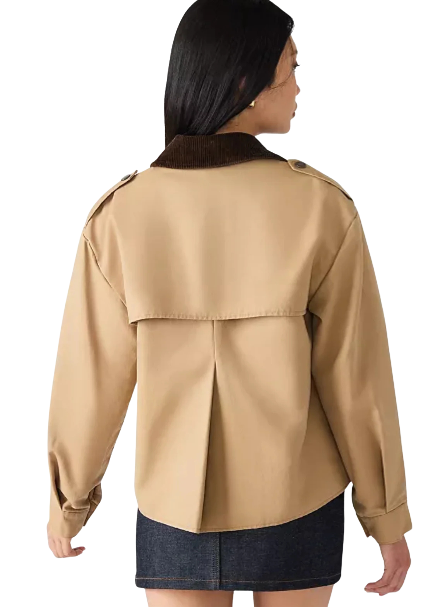 A contrasting corduroy collar and crisp back pleating provide distinguished finishing touches for this go-to jacket made from lightweight cotton-blend twill.