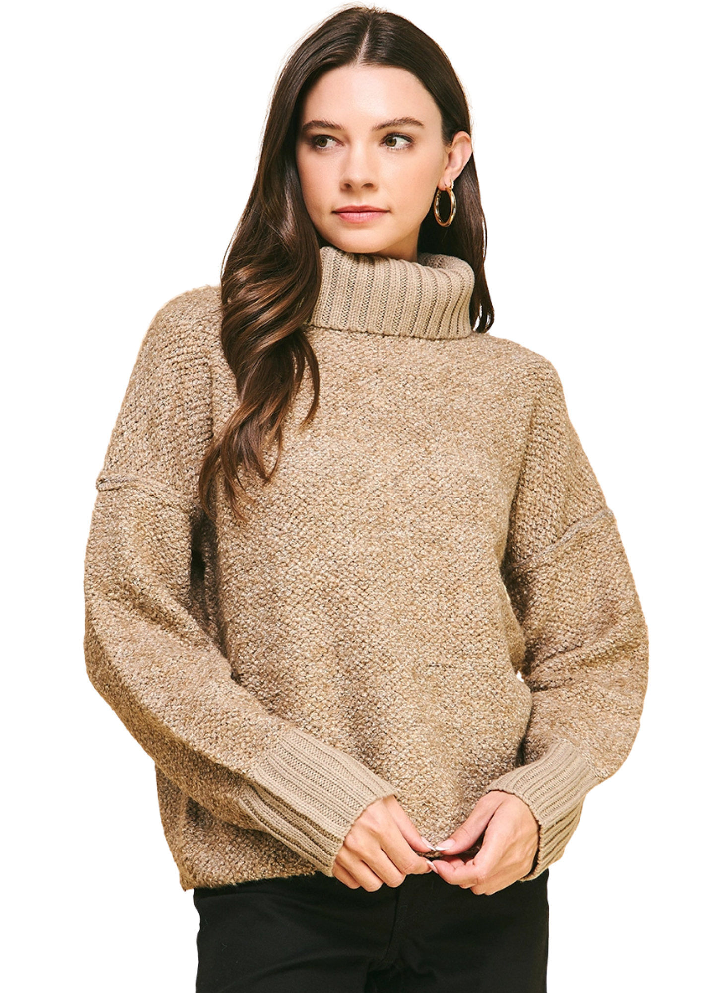 Cozy up in this classic turtleneck sweater featuring a comfortable drop shoulder silhouette and long sleeves. Perfect for layering or wearing solo, this wardrobe staple keeps you warm and stylish through any season. The relaxed fit and soft construction make it ideal for everyday wear, whether you're heading to the office or keeping it casual at home.