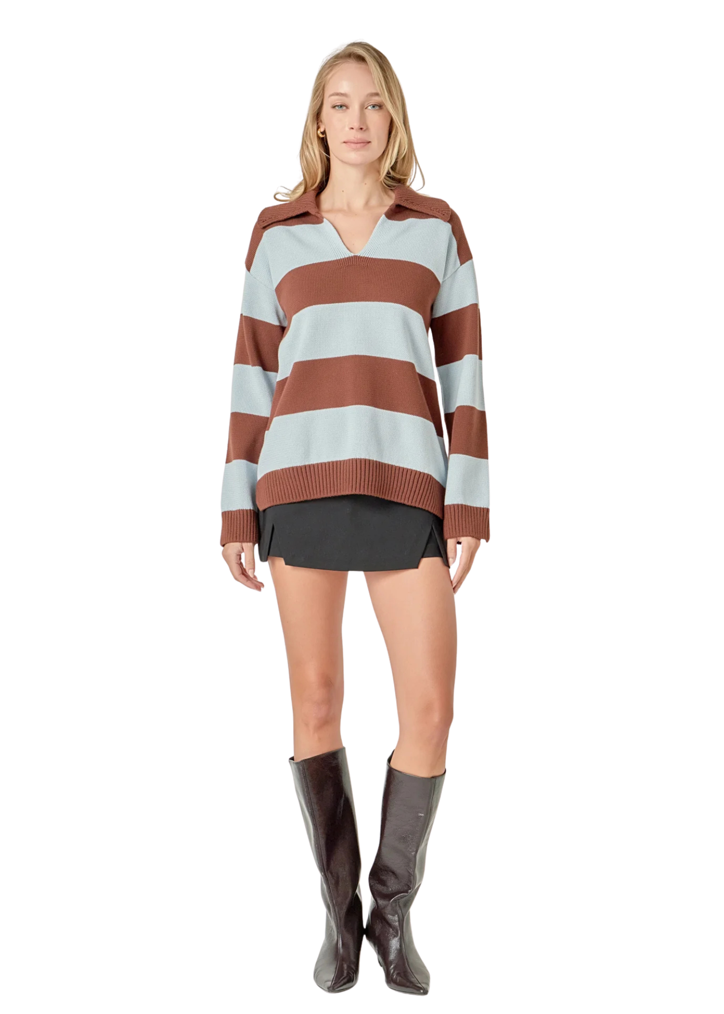 Stripe Rugby Collared Sweater