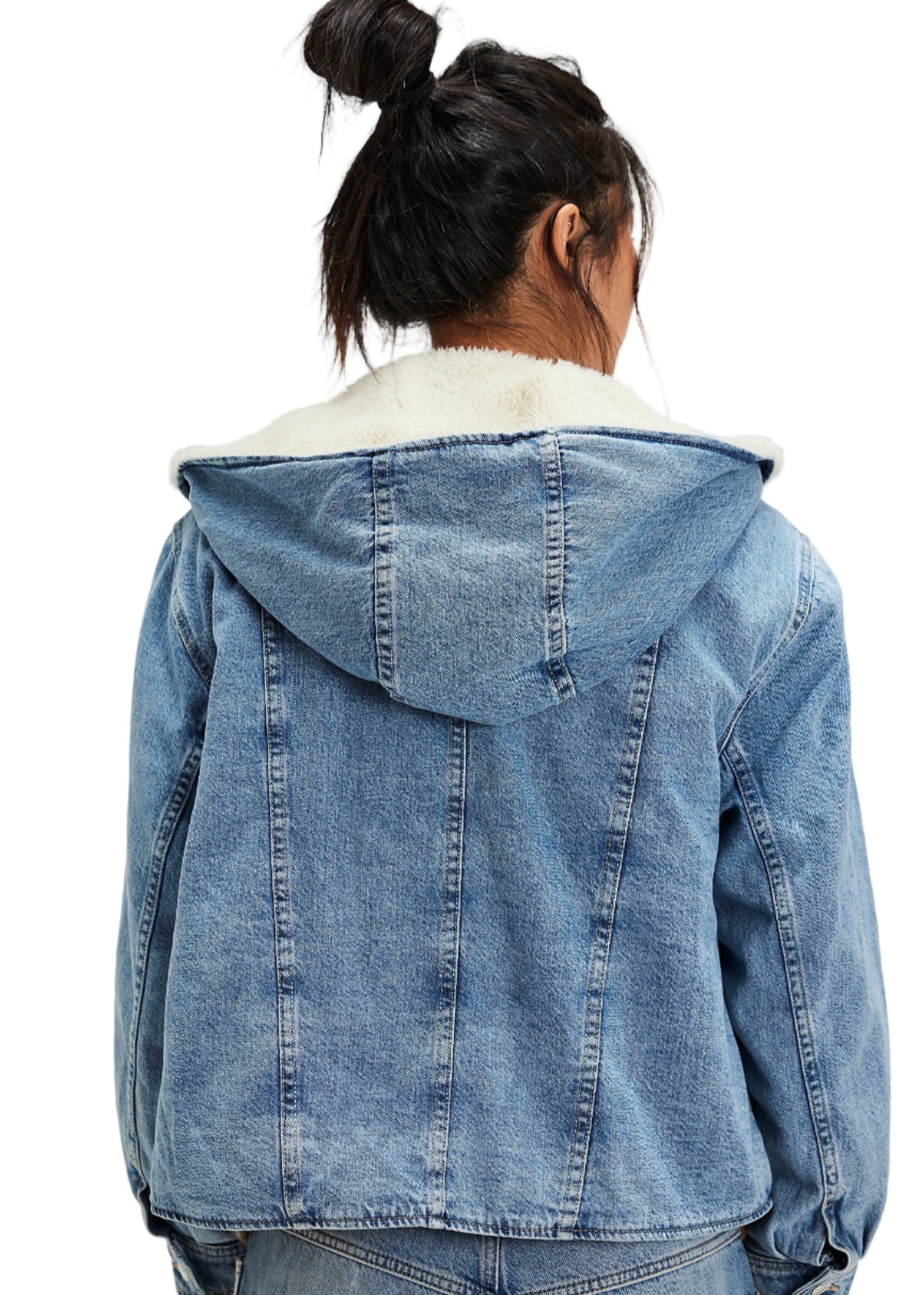 So essential to your outerwear wardrobe, this slouchy denim jacket from our We The Free collection features a comfy cotton fabrication, bomber-inspired silhouette, and a sherpa lining for a cozy feel.