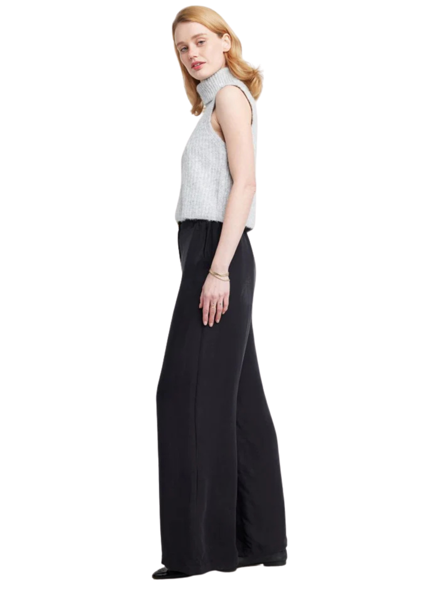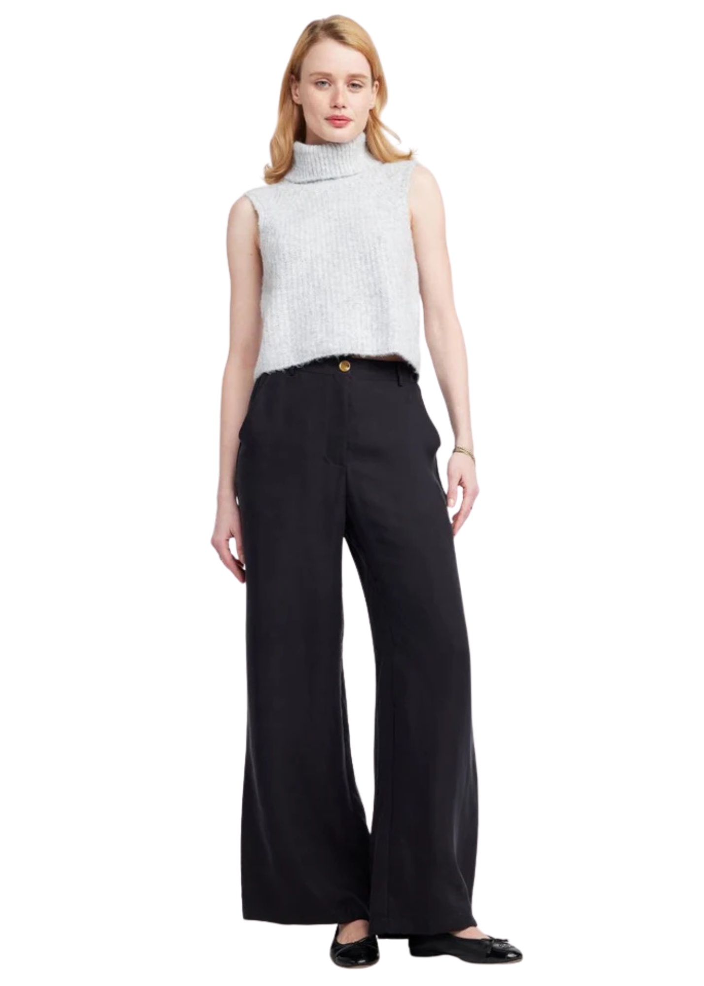 The Finley Turtleneck Sweater Vest is a versatile layering piece with a minimalist edge. Featuring a chunky rib-knit texture, sleeveless cut, and a relaxed high-neck, it’s ideal for pairing with tailored pants or layered over blouses for a modern look.