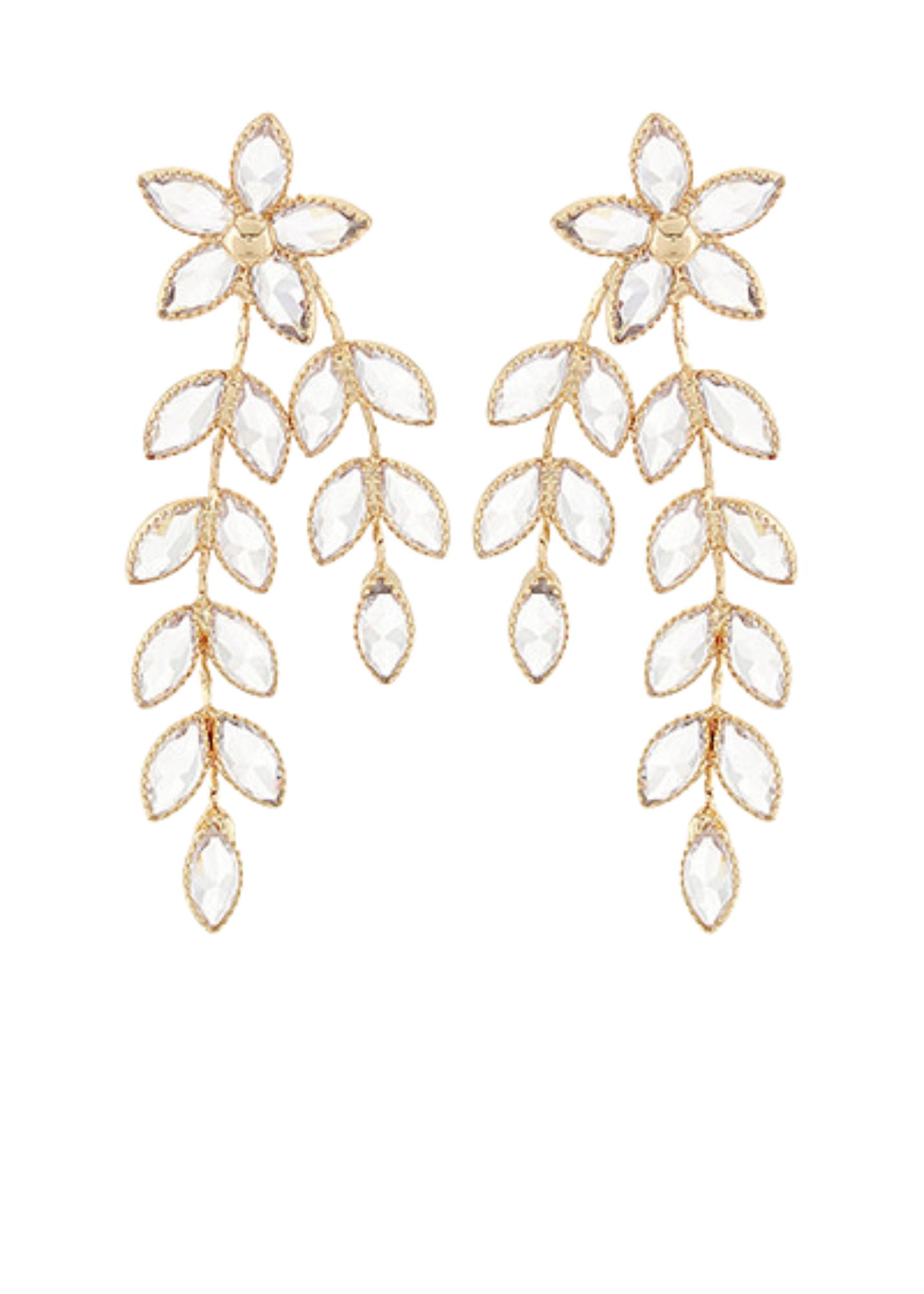 Crystal Flower & Leaves Drop Earrings