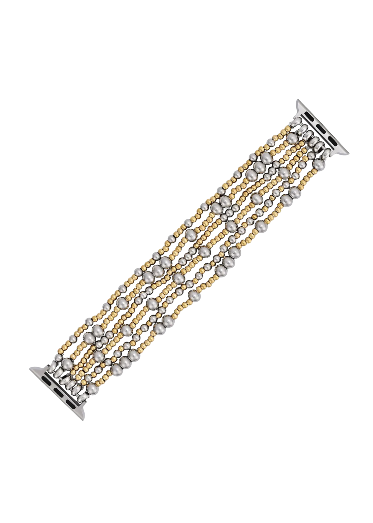 Add a hint of luxury to your wrist with the Eternal Glow Stretch Apple Watch Strap! Crafted with a stunning mix of silver and gold beads, this strap brings effortless sophistication to any look.
