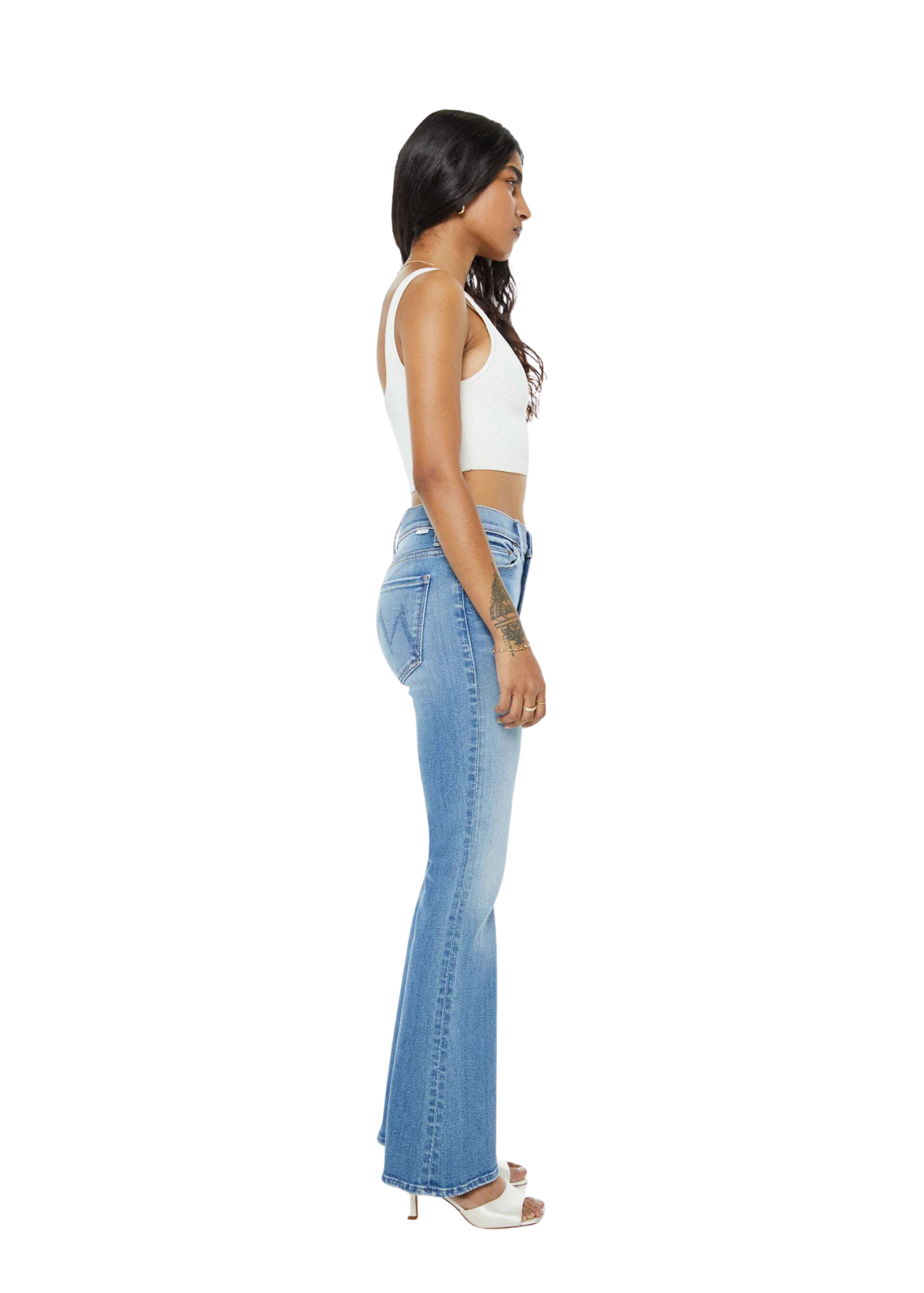 This cult-favorite flare jean has a mid rise with a sneaker-length inseam and a clean hem. Made from stretch denim, Layover is a bright mid-blue wash with whiskering and fading throughout. Pairs well with a spotty Wifi connection and airport snacks.