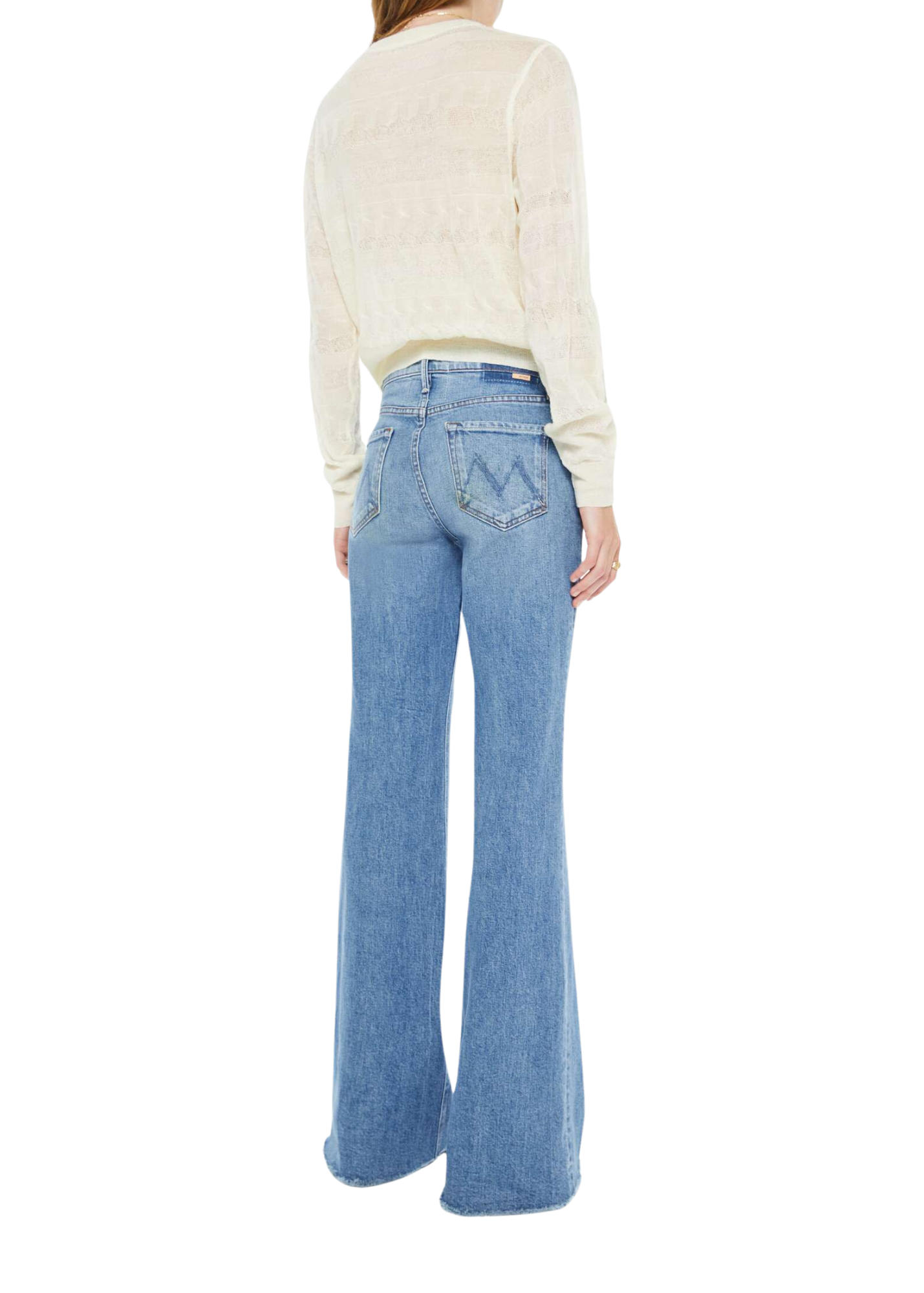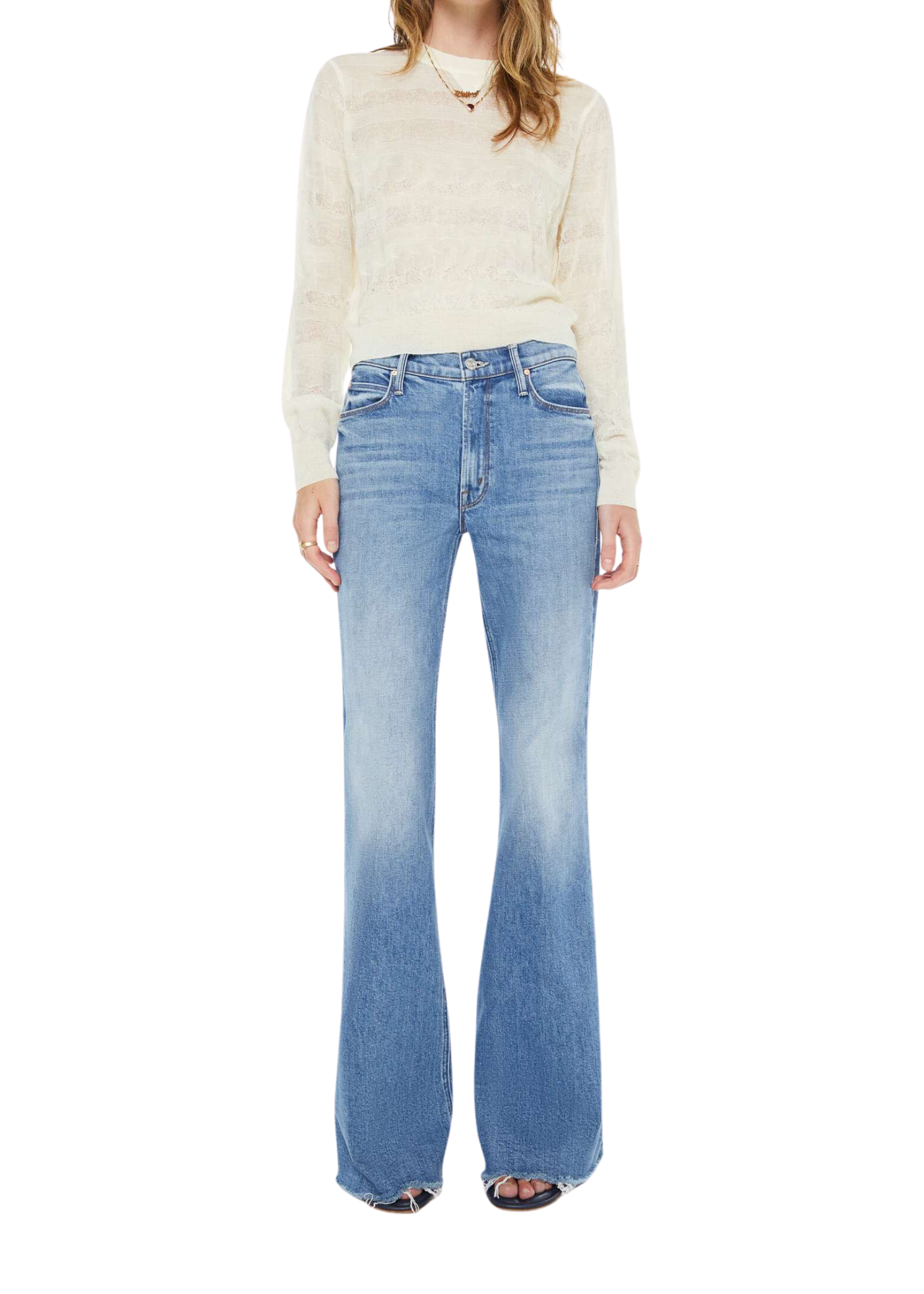 Fair and square. A high-rise flare with a zip fly, long 34-inch inseam and a frayed hem. Made from semi-rigid SUPERIOR denim, Heads Or Tails is a vintage blue with subtle whiskering and fading throughout. 98% Cotton 2% Elastane.