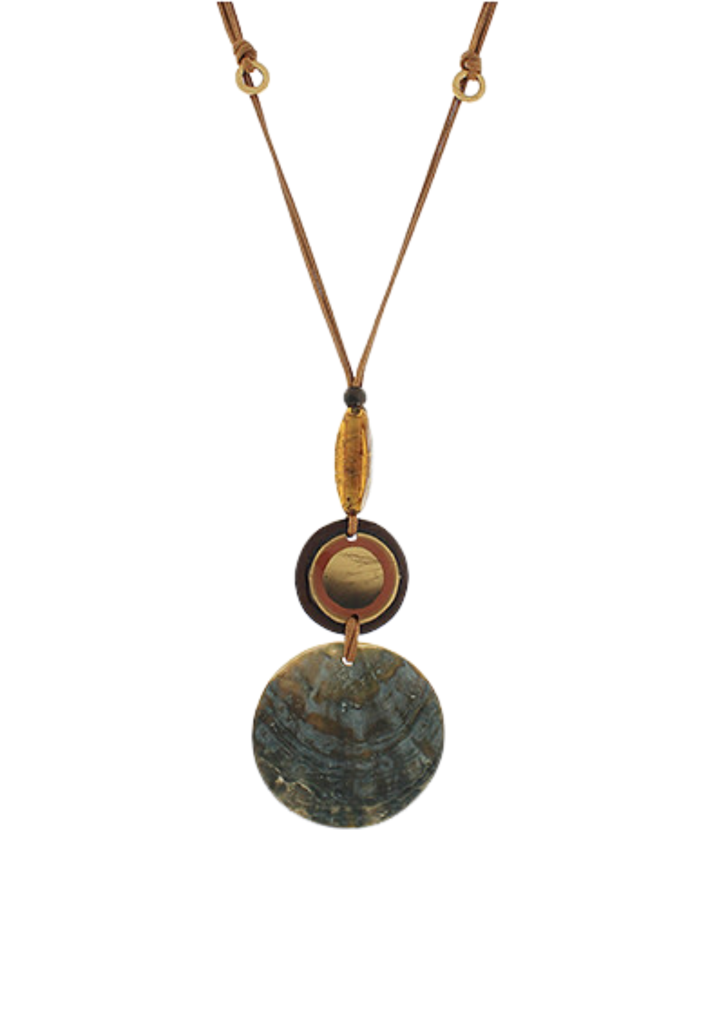 Shell & Round Pendant 4 Layered Cord Necklace