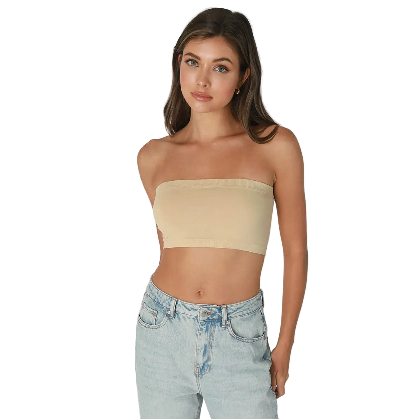 Size: One Size. Basic plain jersey bandeau bra top. Fabric: 92% Nylon / 8% Spandex. Made in the USA So classic tube-style bandeau top that offers the support of a bra with the comfort of a cami. An everyday essential .