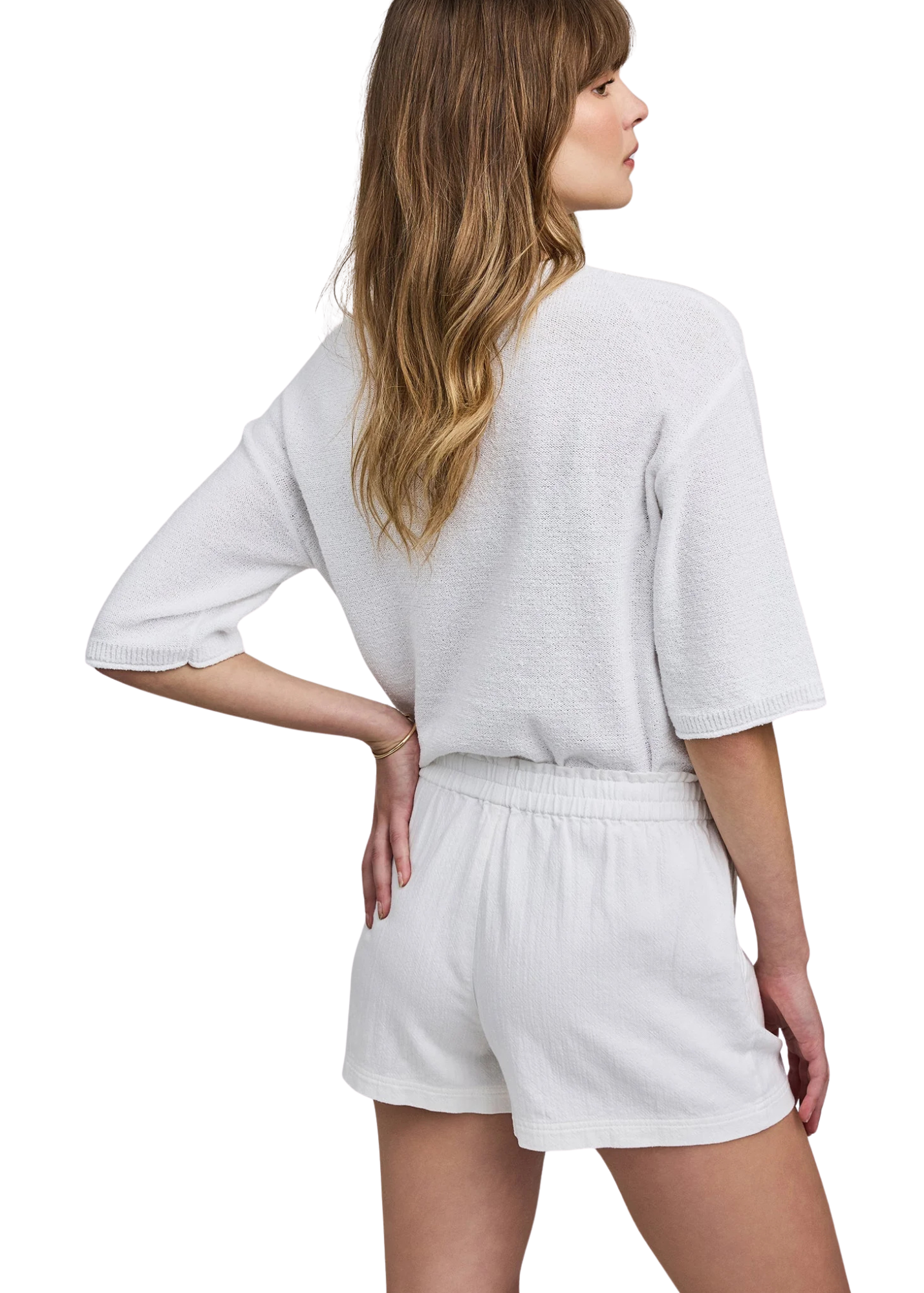 The Cleo short is made of a textured cotton twill that has been specially washed for a soft feel. Features include slash pockets and an elasticated waistband. Complete the look with the Inez Tank.