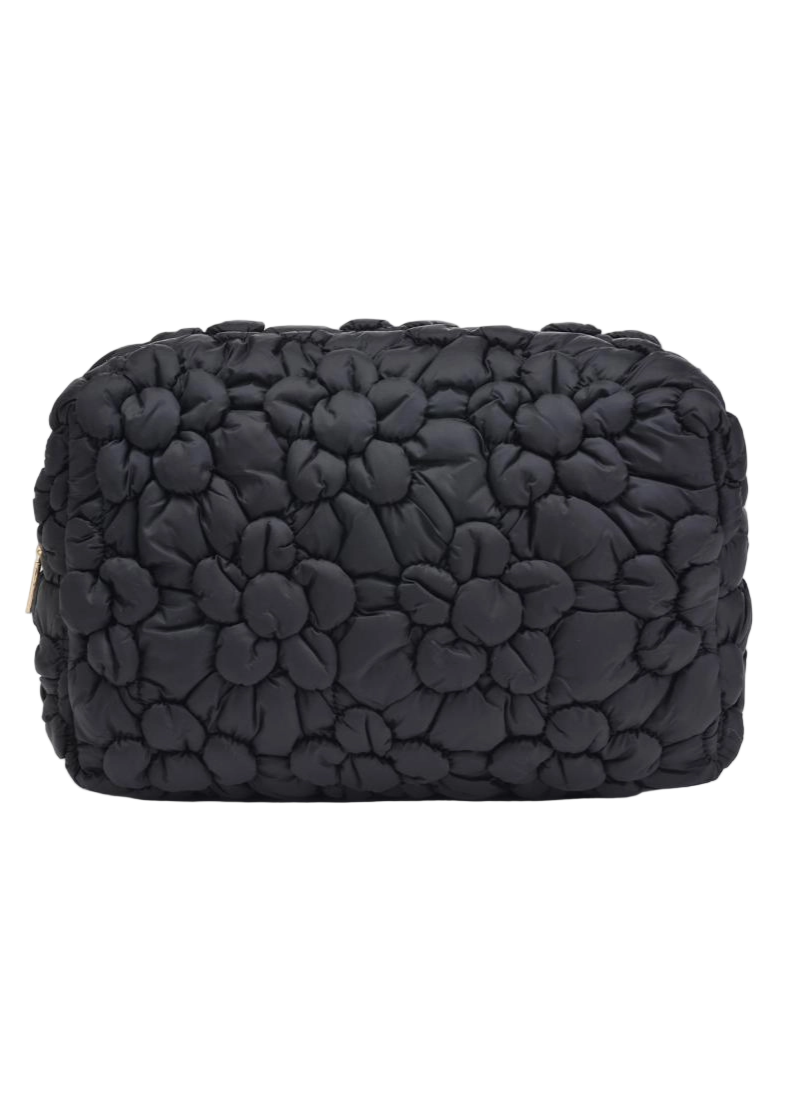 Featuring a unique quilted floral design, this spacious yet compact bag is perfect for storing makeup, toiletries, and small essentials. Its lightweight, durable construction makes it ideal for travel or everyday use.