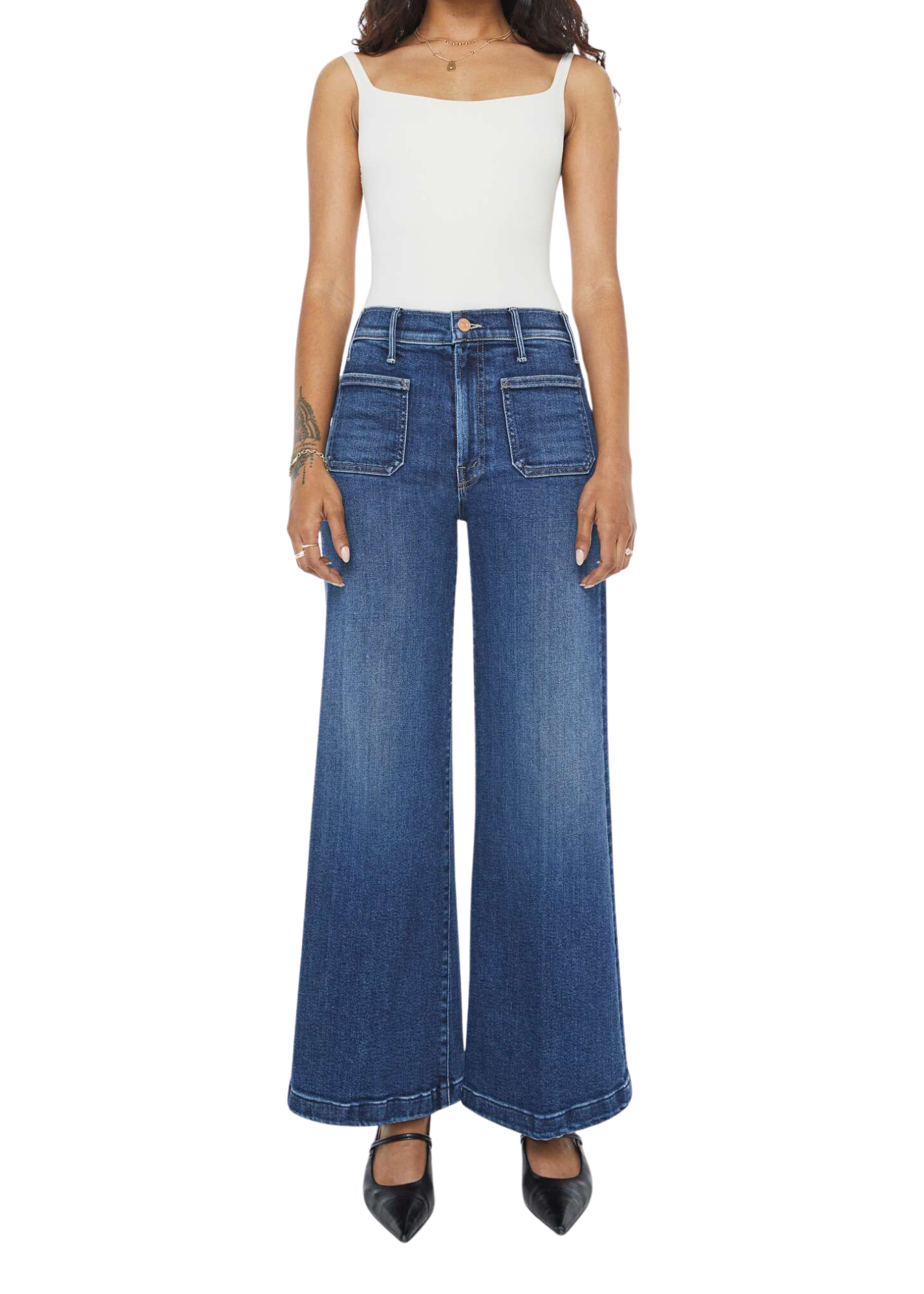These 70s-inspired wide leg jeans have a high rise, zip fly, long 29-inch inseam and a clean hem. Made from stretch denim, Heirloom is a dark-blue with subtle whiskering and fading. Only at MOTHER. 65% Cotton 33% Lyocell 2% Elasthane.