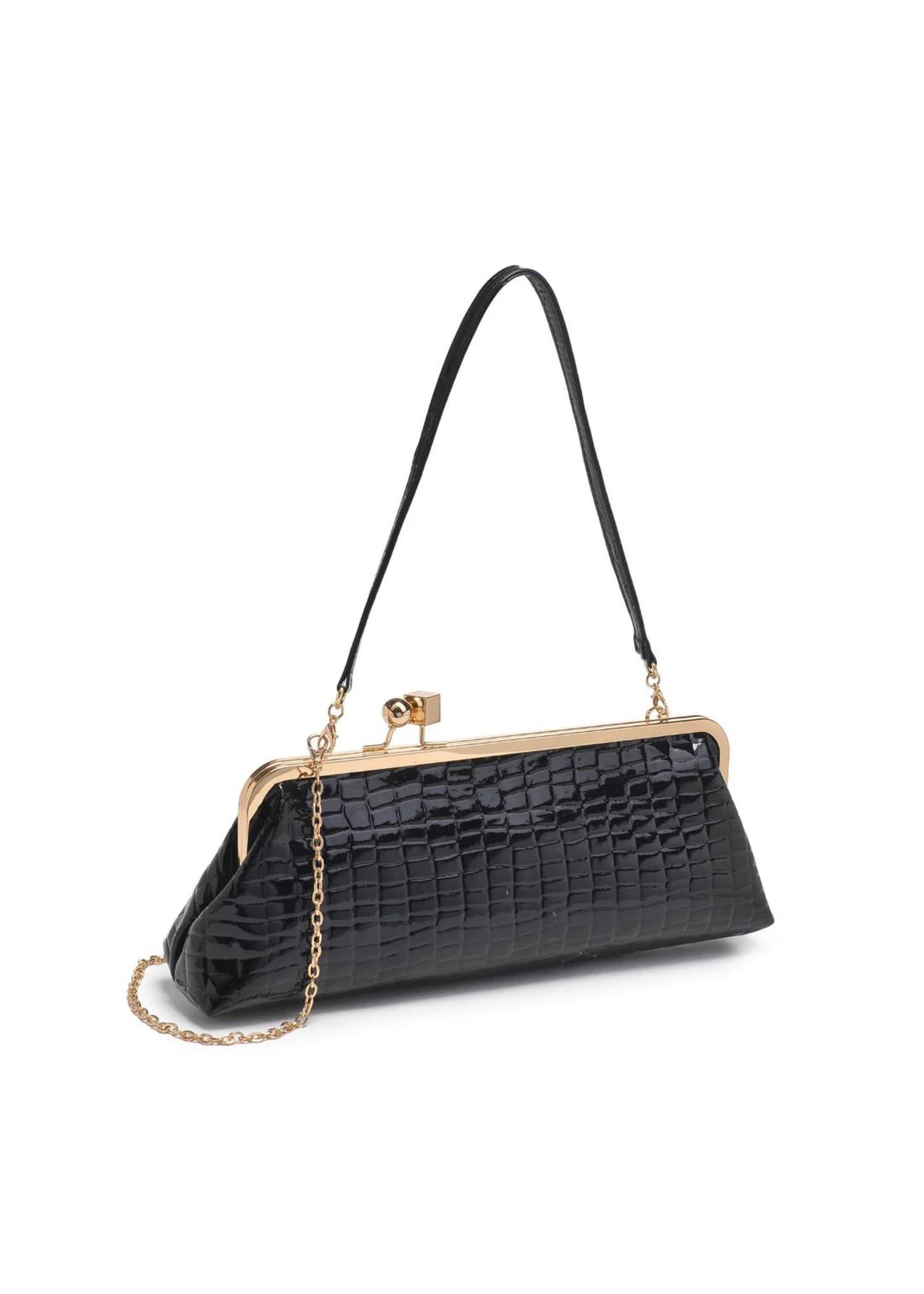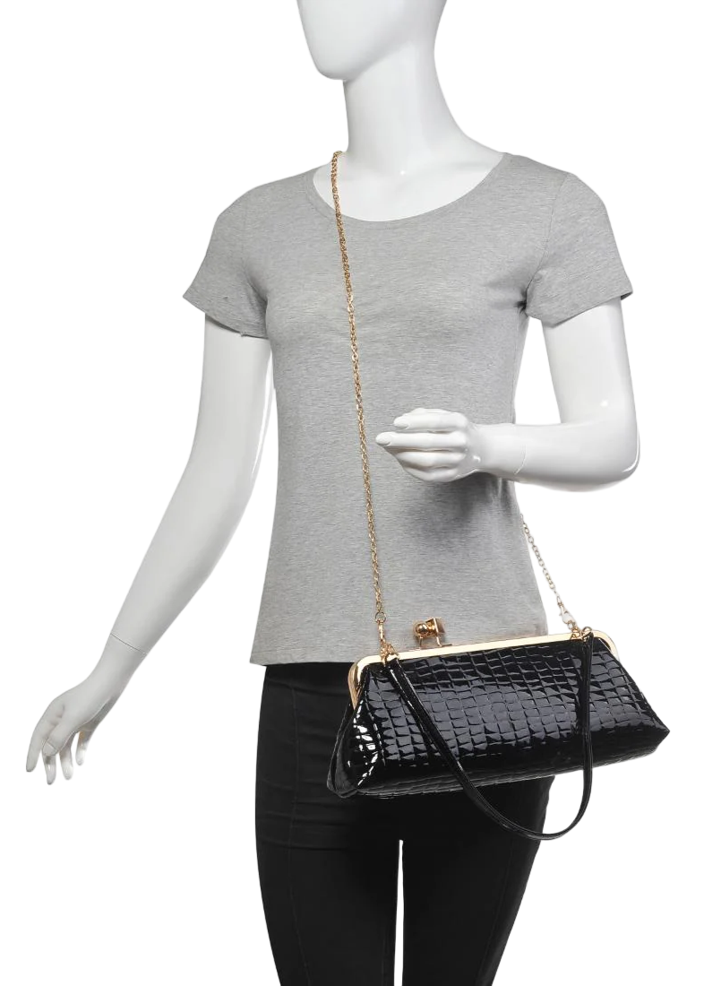 - Exterior Details: Gold Hardware, Detachable Chain Strap, Detachable Shoulder Strap, Croc Print