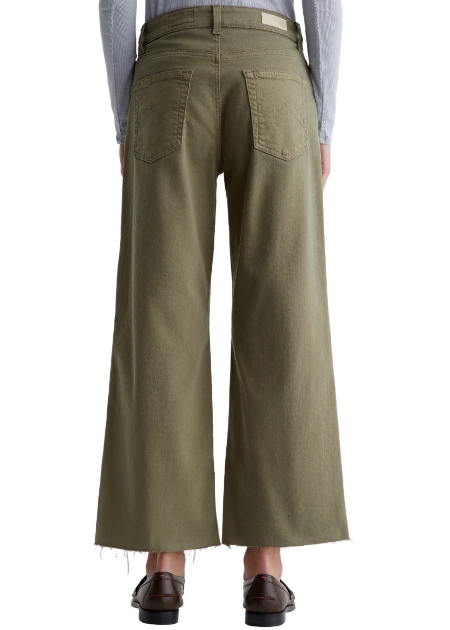 The Saige Wide Leg Crop has a mid-rise waist and a loose, spacious silhouette with raw hems. Updated in rosemary green, these women's wide-leg jeans feature Cloud Soft Stretch Denim, an exclusive AG fabric with special left-hand twill construction that's designed to get softer with every wear.