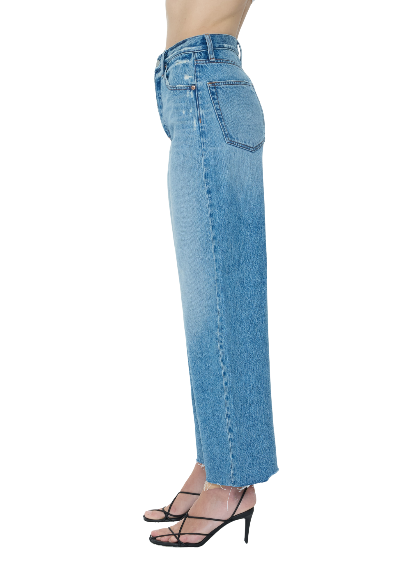 Designed with a high rise and dimensional bowed leg, Tate offers modern proportions with a clean, cropped length with a 28" inseam. Ablaze, a lighter, Spring-ready wash, is a soft shade that pairs seamlessly with any palette. Crafted from rigid denim, this style will naturally soften and relax with wear.