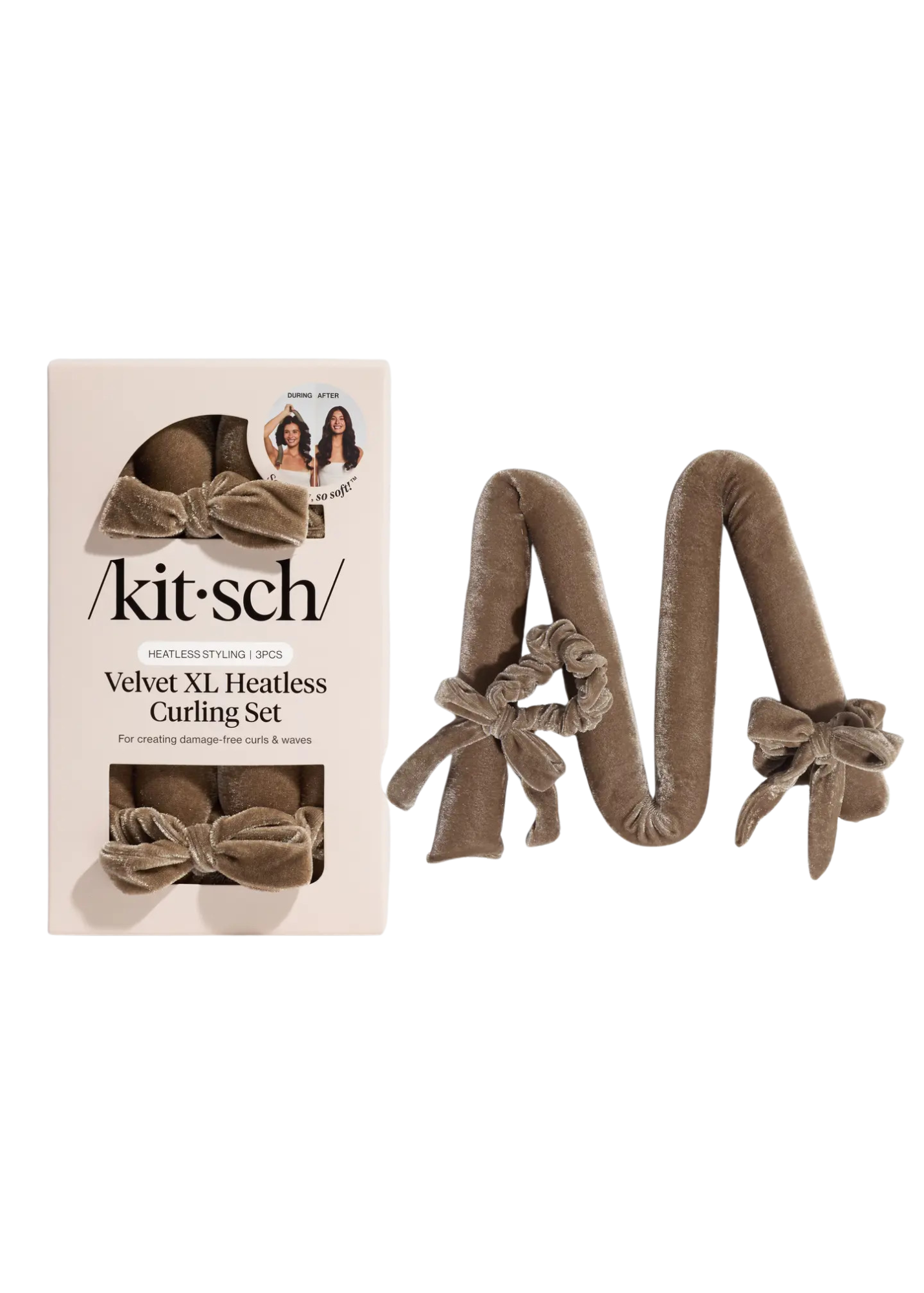 The Kitsch Velvet XL Heatless Curling Set styles your strands for a fresh-from-the-salon look. It’s soft velvet that gently and securely sets your strands, this extra-long curling rod and bow scrunchie set is crafted for comfortable day and overnight wear. Just wrap, set, and style for bouncy, voluminous curls.