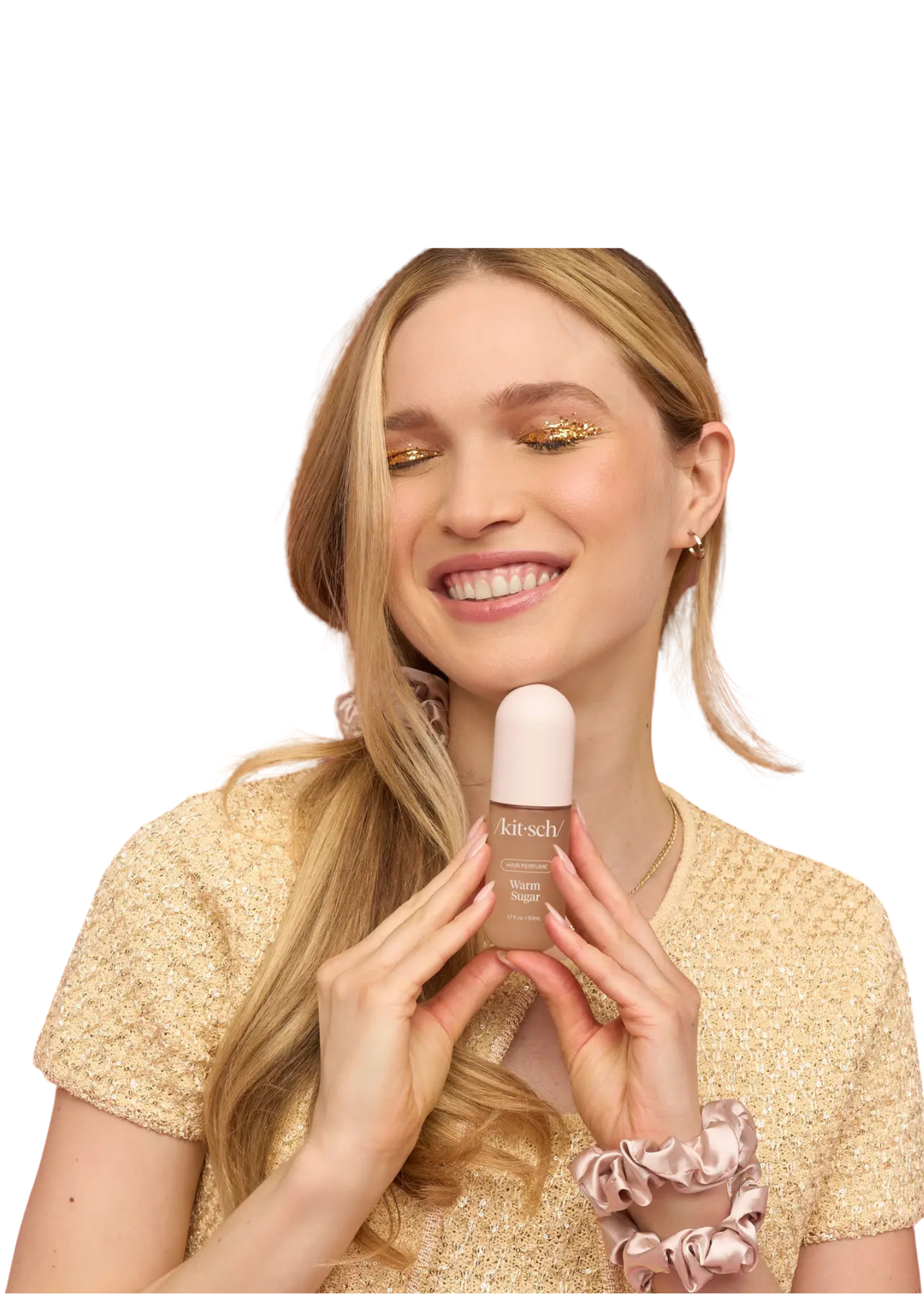 Wrap yourself in cozy holiday vibes with the Kitsch Happy Holiday Hair Set – Warm Sugar. Featuring a luxurious hair & body mist, this scent blends vanilla, sweet sugar, and pink grapefruit for a warm, indulgent finish that lingers just the right amount. Infused with patented odor-neutralizing technology, it refreshes your hair, body—even your Kitsch Satin Pillowcase—between washes.