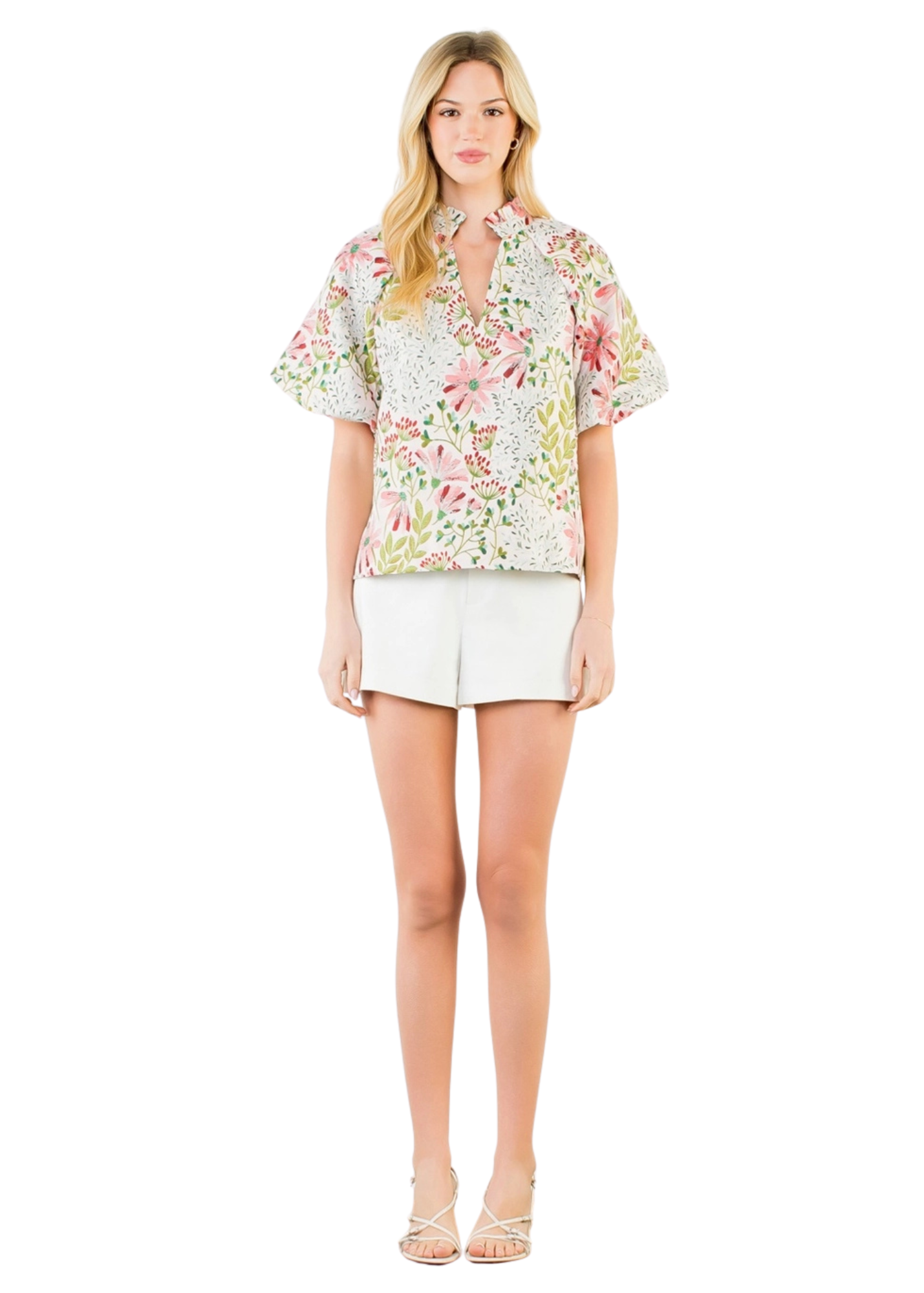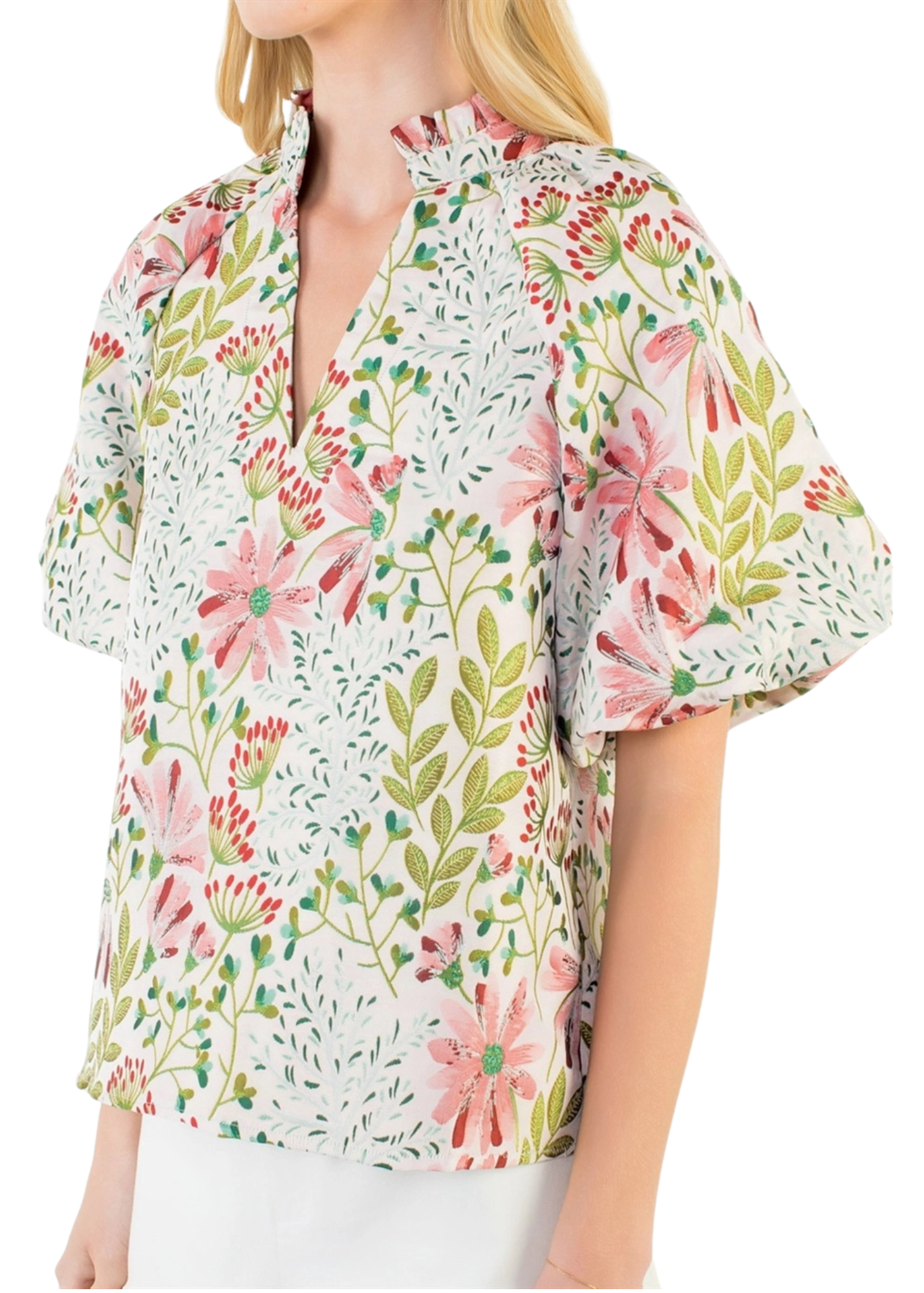 Puff Sleeve Floral Pattern Top