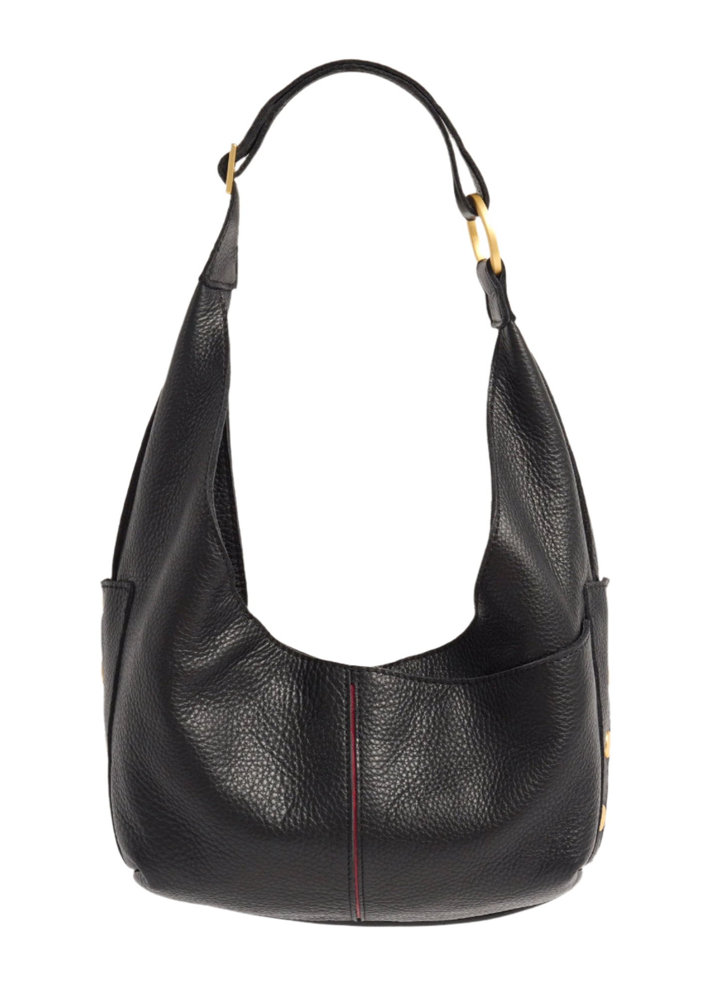 Meet the Tom Zip Med, a compact and trend-forward take on our best-loved hobo bag. Featuring an adjustable shoulder strap, zippered main compartment and exterior pockets, this fashion forward but spacious silhouette makes the ultimate day-to-night shoulder bag. Crafted with our classic black pebbled leather, red zipper tape and gold hardware.